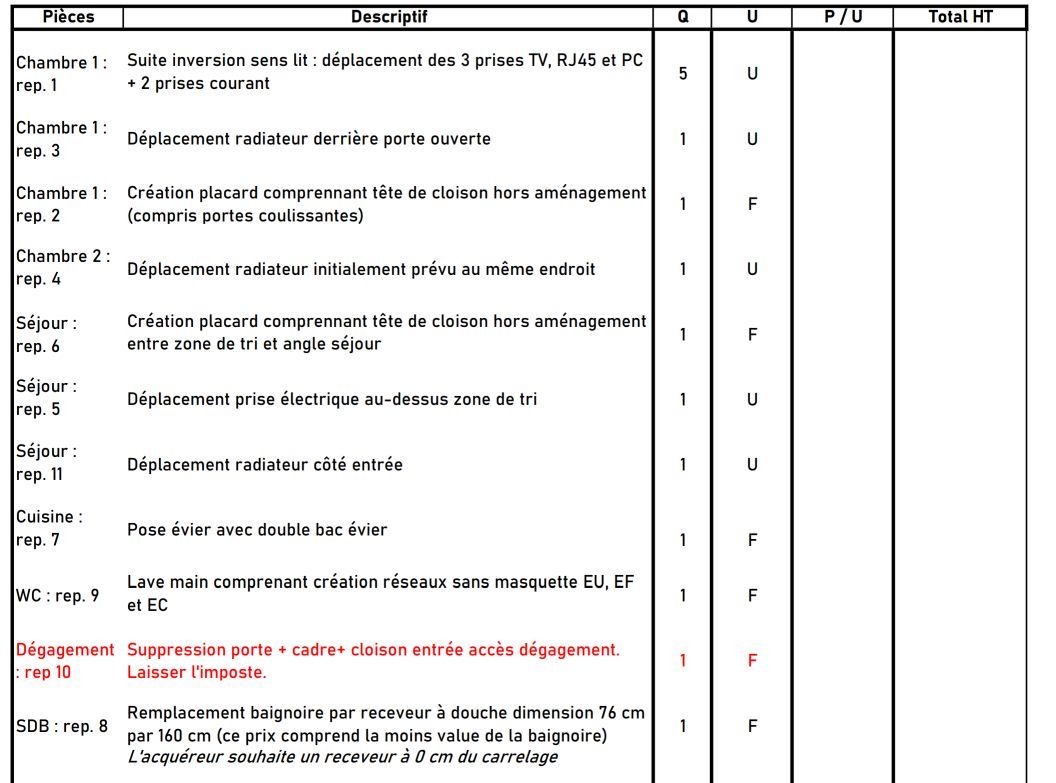 - Grille de prix réalisée à l'aide du maître d'ouvrage