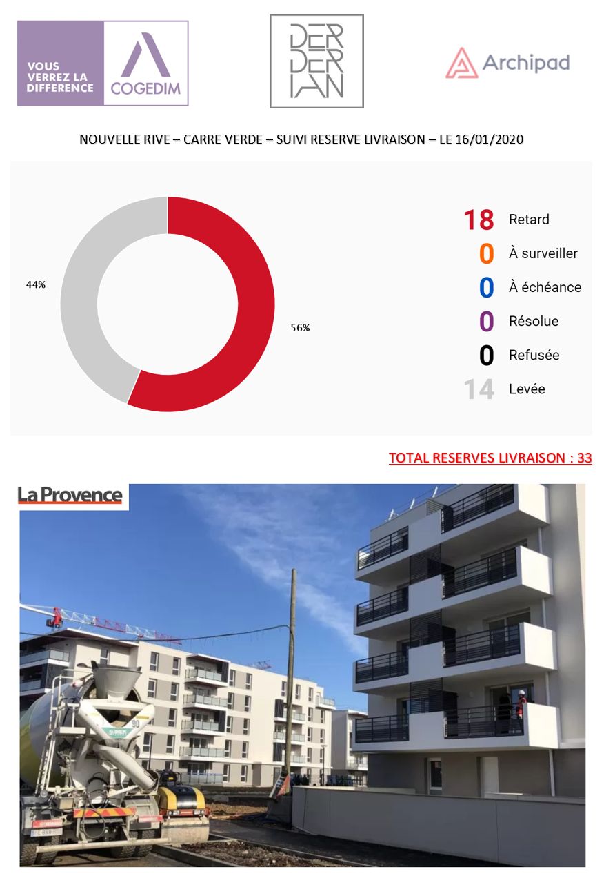 Nous mettons à jour 2 fois par semaine les statistiques de suivi de réserves OPR, OPL, livraison et lettre à 1 mois. Nos outils sont performants.